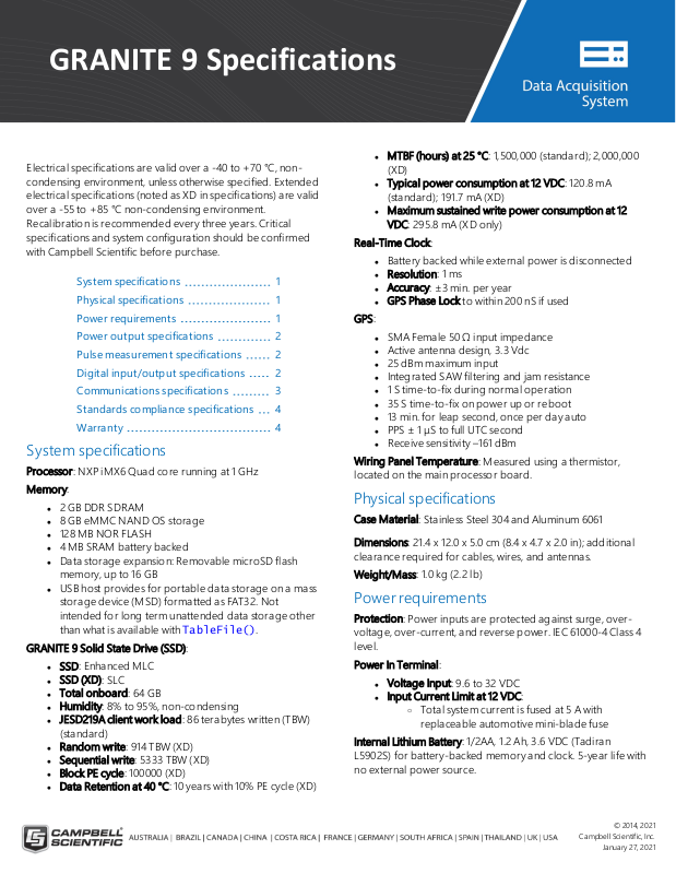SDI-12 (C1, C3, C5, C7): Four independent SDI-12 compliant