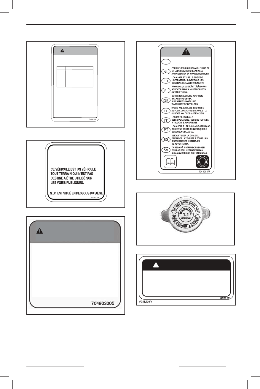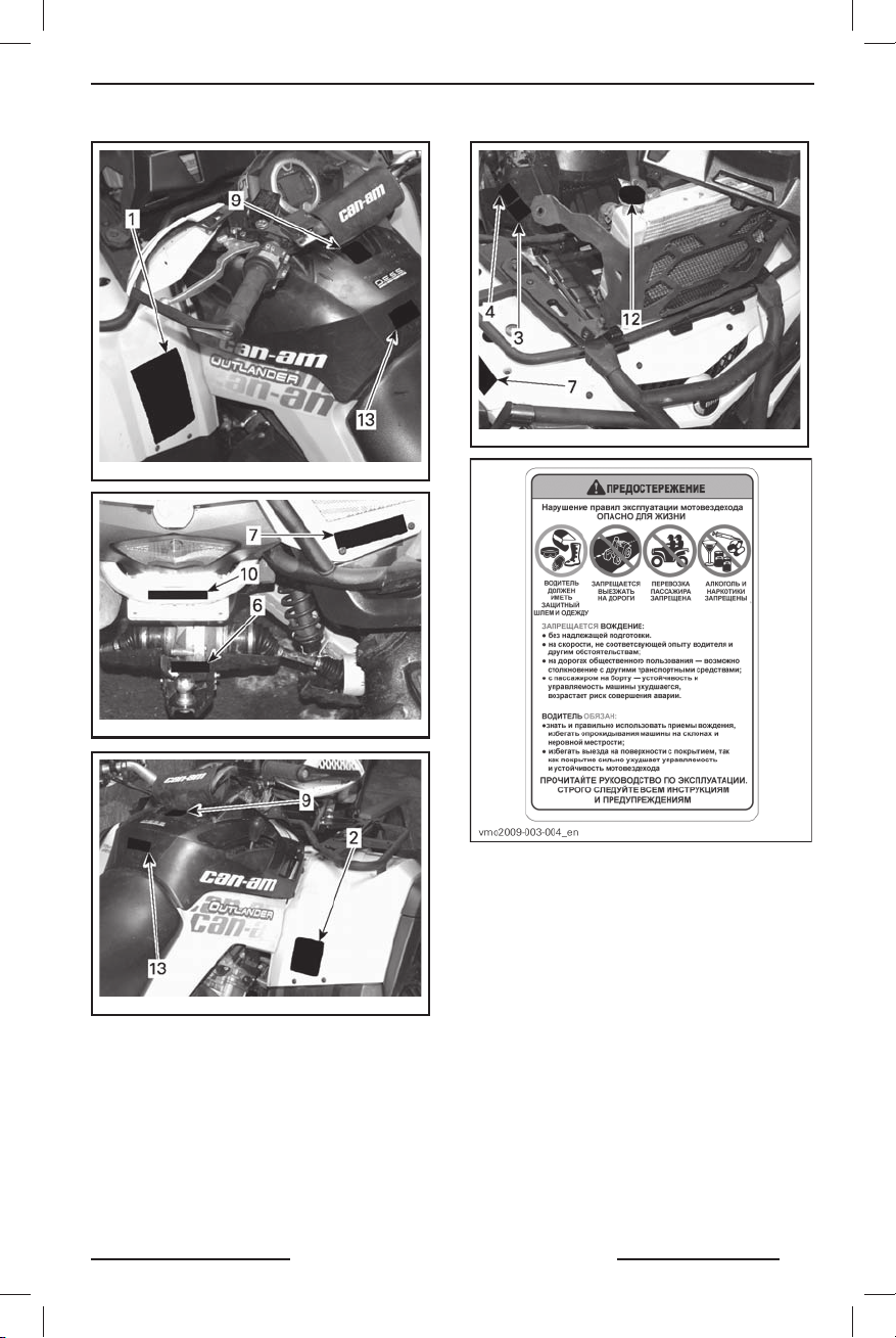 Также прочитайте предупреждающие наклейки, расположенные на мотовездеходе,