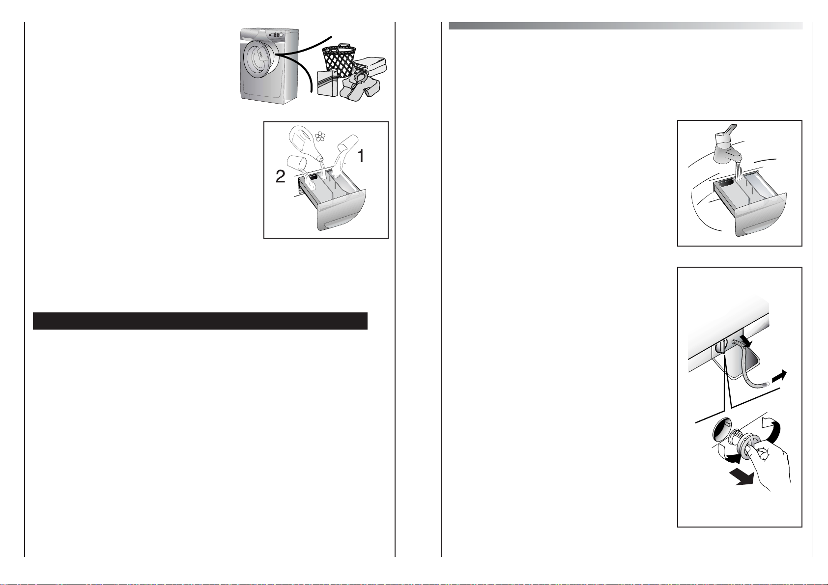Ouvrez la porte en activant le bouton dans la poignée "A" (voir fig.1, page 6). –Triez le linge et placez-le dans la machine. – Fermez la porte. – Mettez du détergent dans les bacs de dosage, comme indiqué dans le tableau des