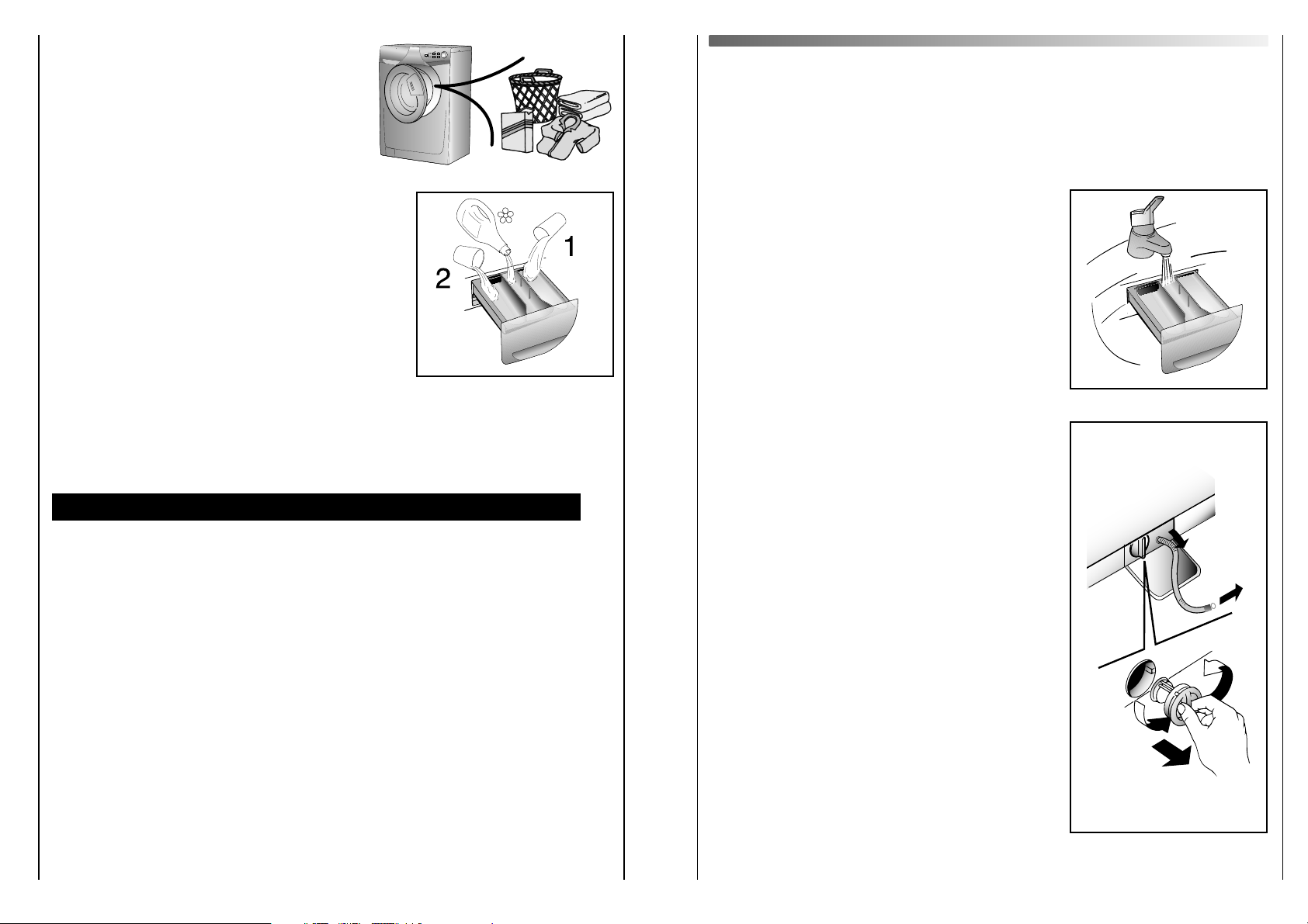 le bac à détergent, les tuyaux ou le câble d’alimentation. Pour éviter d’endommager la porte