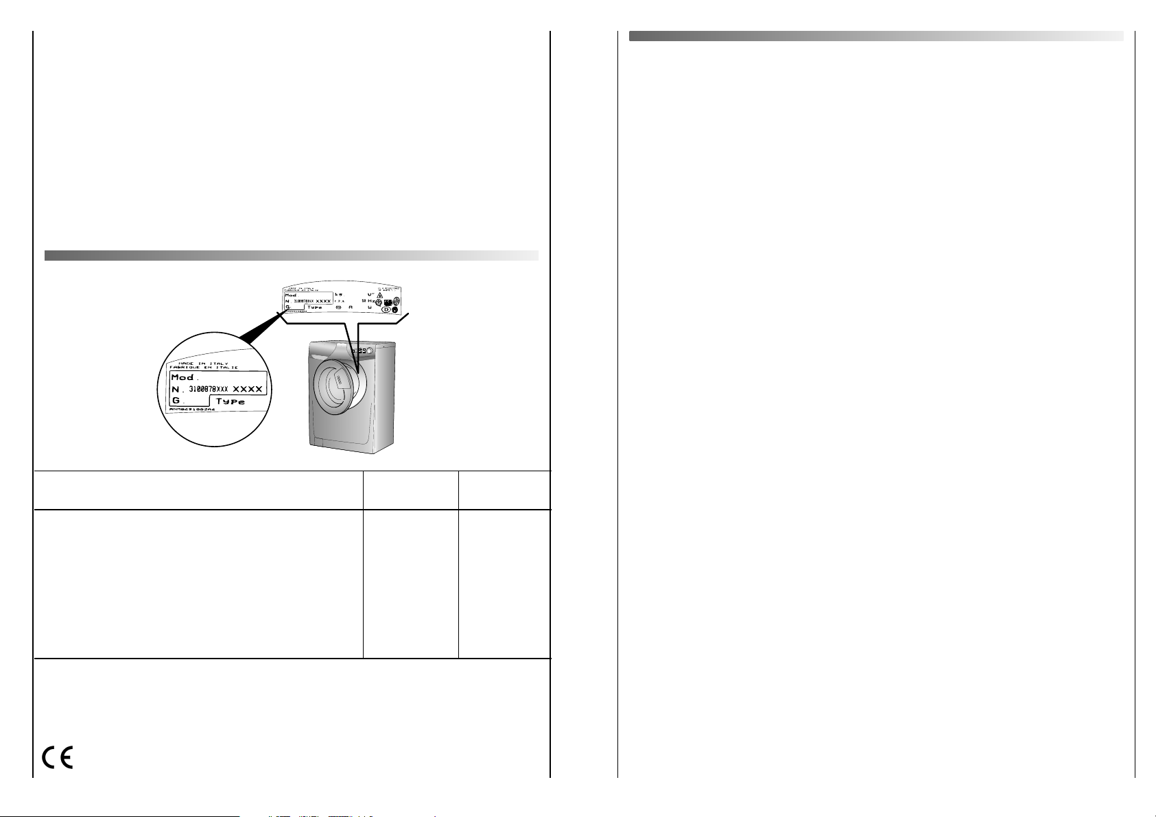 Les machines à laver sont prévues pour une tension monophasée de 230 V, 50 Hz.