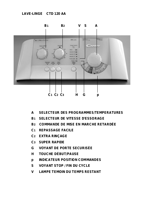 minutes selon le programme et la température de lavage choisis. Cette touche est utilisable avec les
