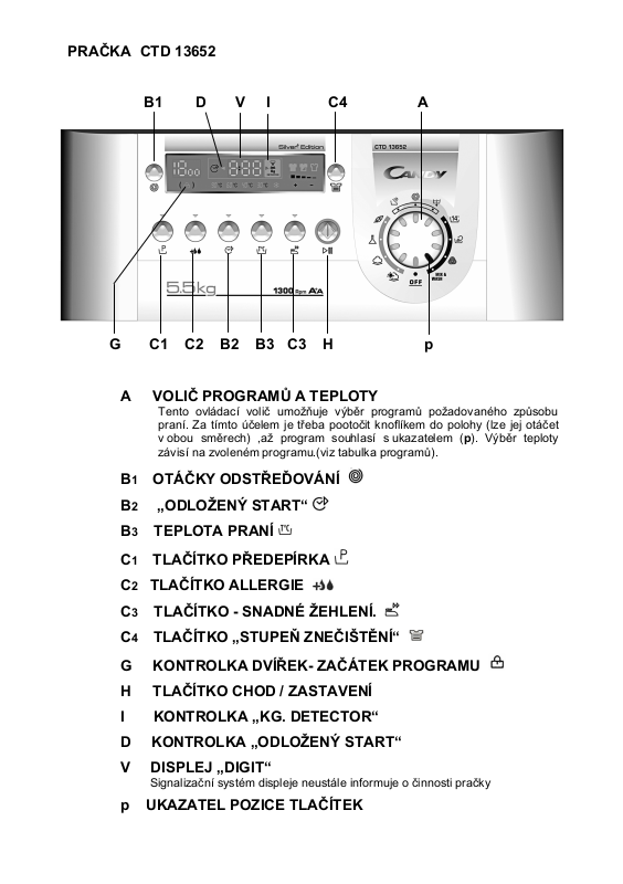 trvání cyklu programu a bude brát v úvahu množství vloženého prádla do bubnu (kontrolka I,,kg detector‘‘