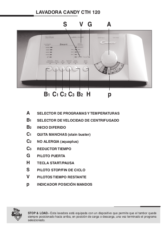 STOP & LOAD.- Esta lavadora está equipada con un dispositivo que permite que el tambor quede