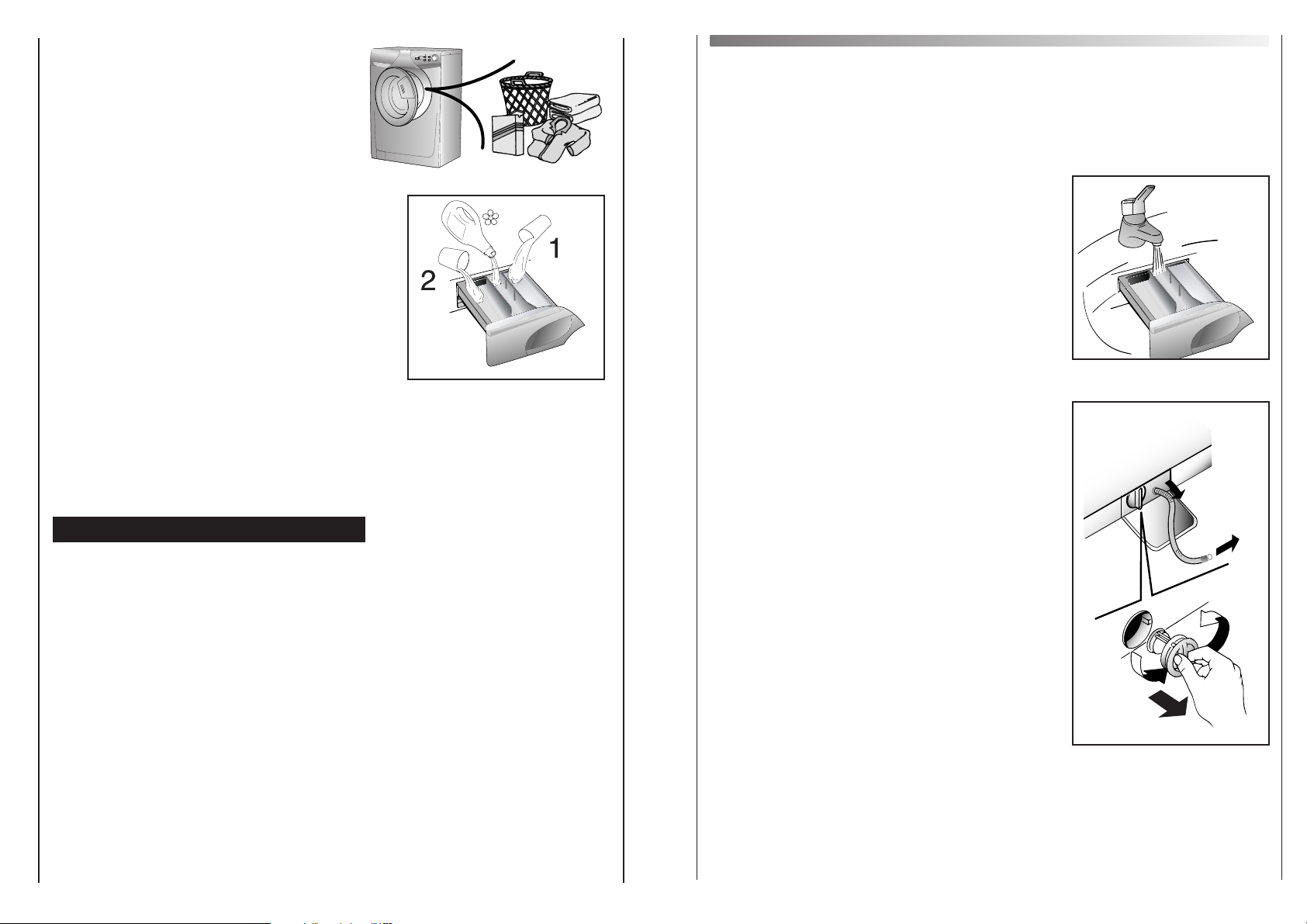 - Put detergent in the compartments as indicated in the programme guide in this instruction