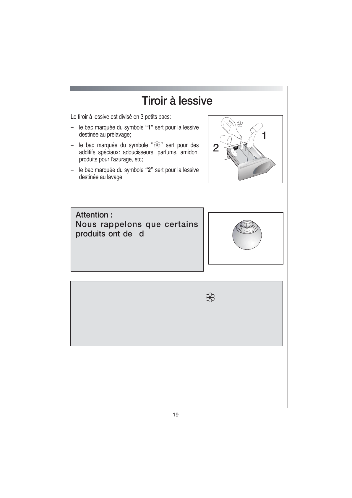 tissus. Respectez les instructions de dosage qui Þ gurent sur les emballages de votre lessive.