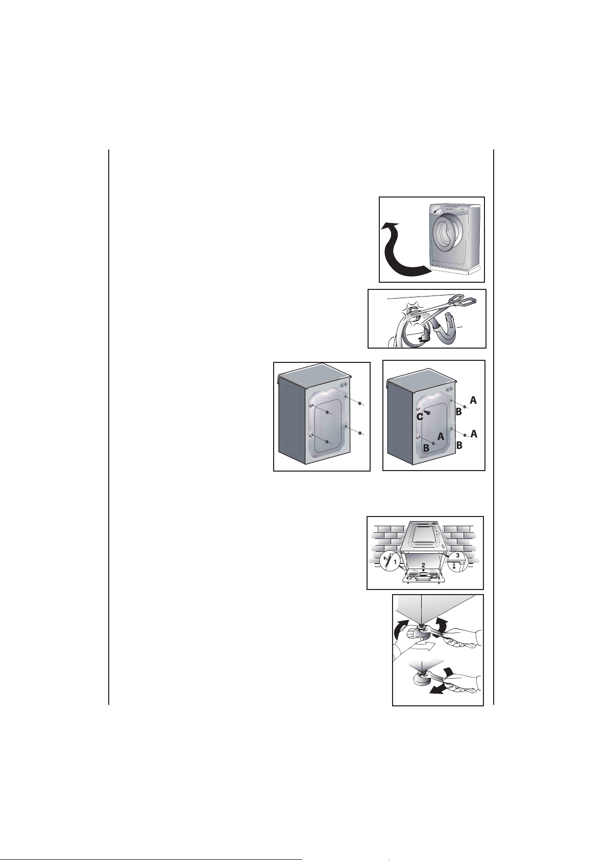 Les machines à laver sont prévues pour une tension monophasée de 220-240 V, 50 Hz.