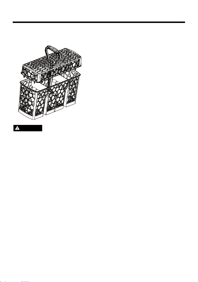 ● Mašina za pranje posuđa dizajnirana je za pranje normalnog kućnog pribora. Predmeti koji su kontaminirani benzinom, bojom, čelikom ili gvožđem, korozivnim, kiselim ili alkalnim hemikalijama ne smeju se prati u mašini za pranje posuđa.