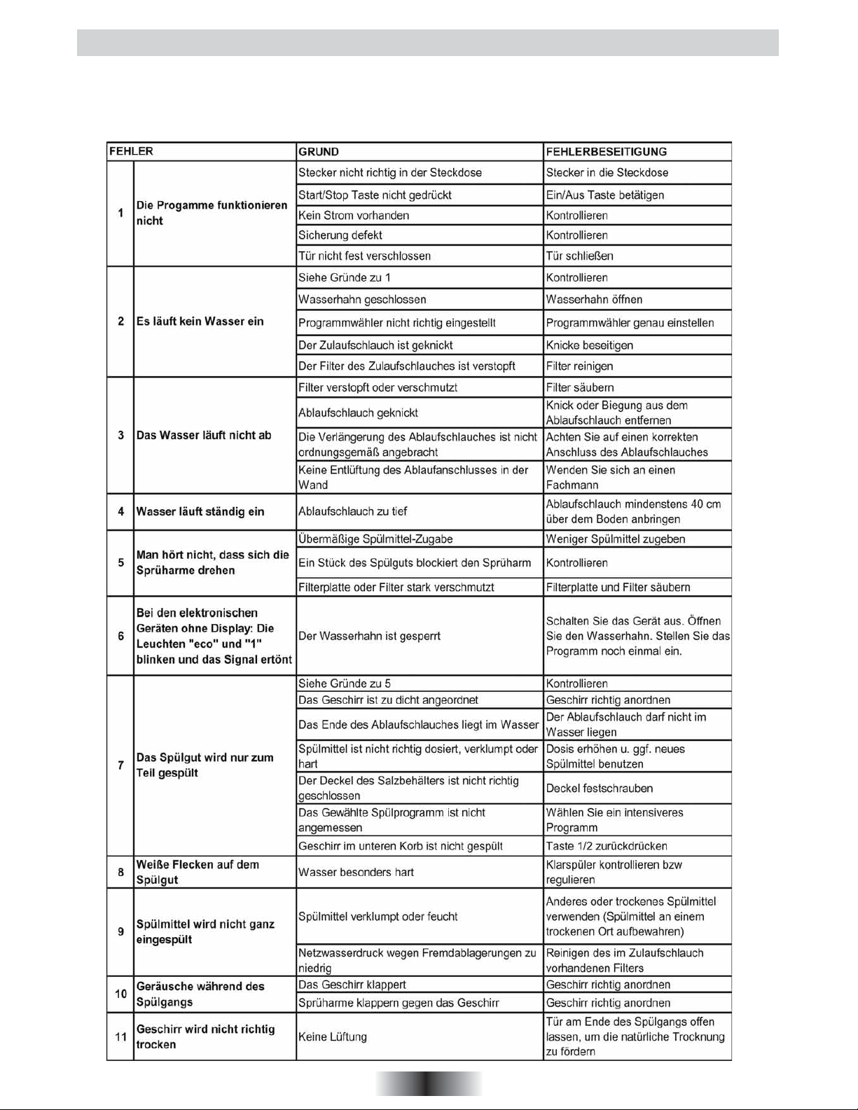 Wanneer de vaatwasmachine plotseling niet goed werkt of helmaal niet, controleer de onderstaande punten, voordat u de Service dienst