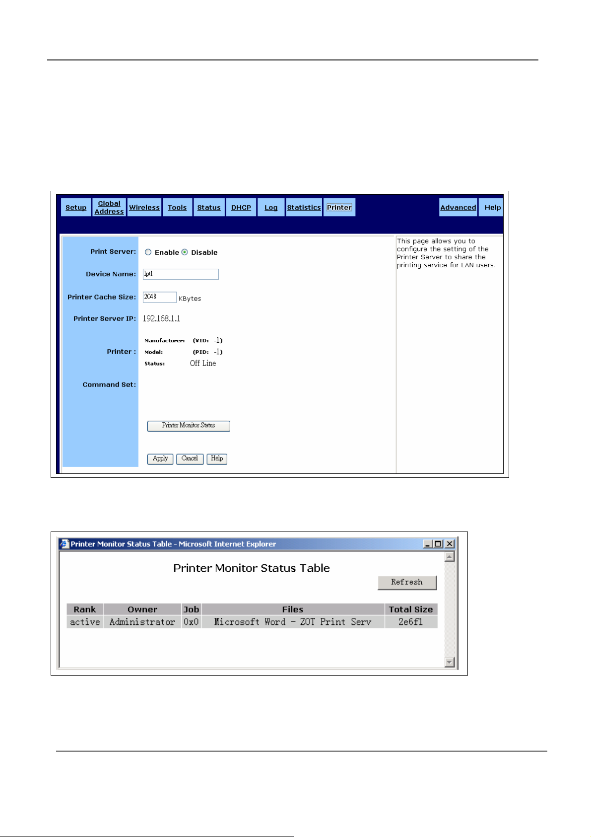 Reset: 1 x Reset Button , USB :1xPrinter Server