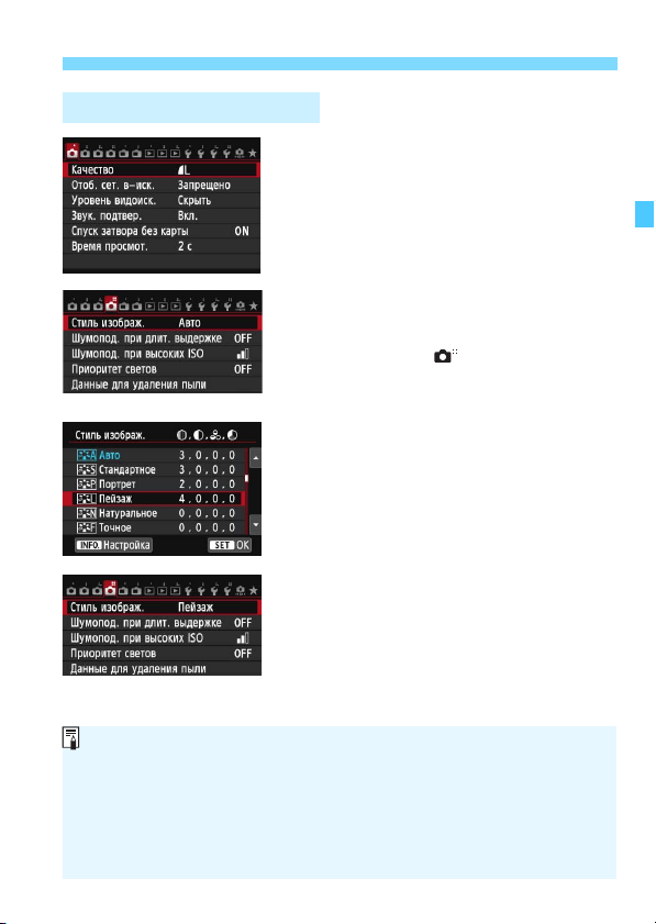 Live View, нажмите кнопку <Q> после выполнения шага 1 и установите