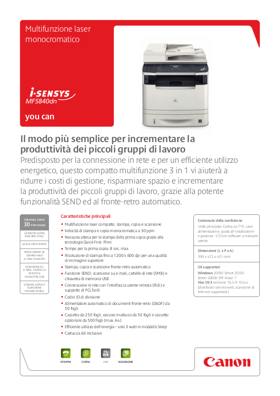 Formati file TIFF (B/N), JPEG, PDF, PDF (Compact)