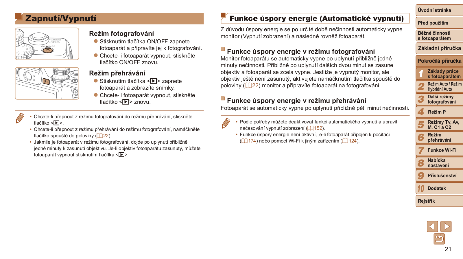 Základní příru Základy práce s fotoaparátem V této příručce isou tlačítka a voliče fotoaparátu označeny ikonami, které 2 Hybridní Auto Tlačítko doleva 🕦 na zadní 3 fotografovár 📶 Režim P Tlačítko dolů 🙉 na zadní M, C1 a C2 6 Rezim přehrávání Funkce Wi-Fi