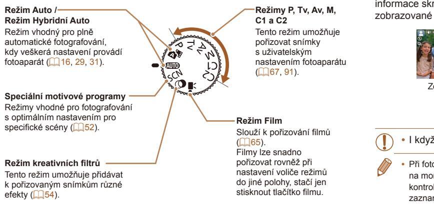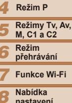 Často používané režimy a přizpůsobené funkce pro fotografování si můžete uložit pro pozdější opakované použití. Chcete-li později zobrazit uložená nastavení, jednoduše otočte voličem režimů do polohy [ C1 ] nebo [ C2 ]. Tímto způsobem lze uchovat rovněž nastavení, která jsou obvykle vymazána přepnutím režimu fotografování nebo vypnutím fotoaparátu (například nastavení samospouště).