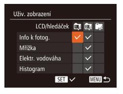 | Vybr. polož Stisknutím tlačítek <▲><▼> nebo otočením voliče <∰> vyberte položku | Chcete-li aktivovat okamžité zobrazení nabídky Má nabídka stisknutím tlačítka |
