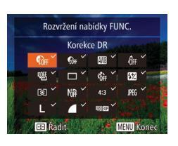 Tato položka umožňuje přizpůsobit zobrazování položek nabídky FUNC. Funkce, které se nezobrazí v této nabídce, budou dostupné na kartě [ nabídky menu.