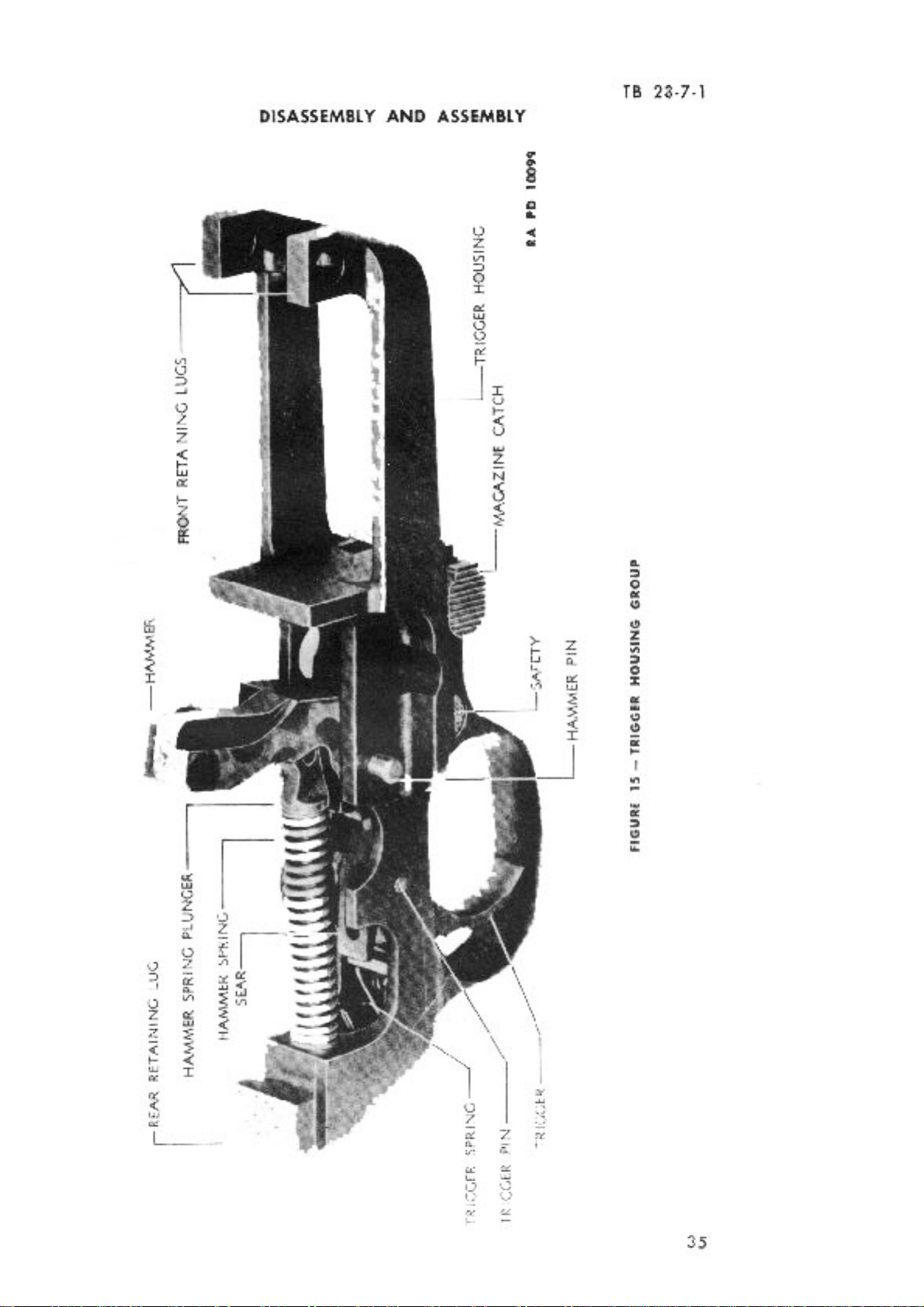 plunger. The trigger housing is attached to the receiver at the rear, by means of a lug on the rear end of the
