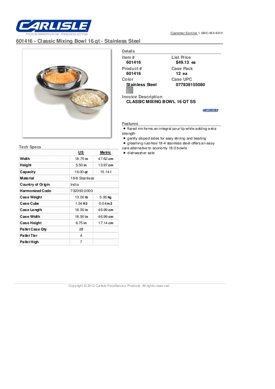 Copyright © 2012 Carlisle FoodService Products. All rights reserved.