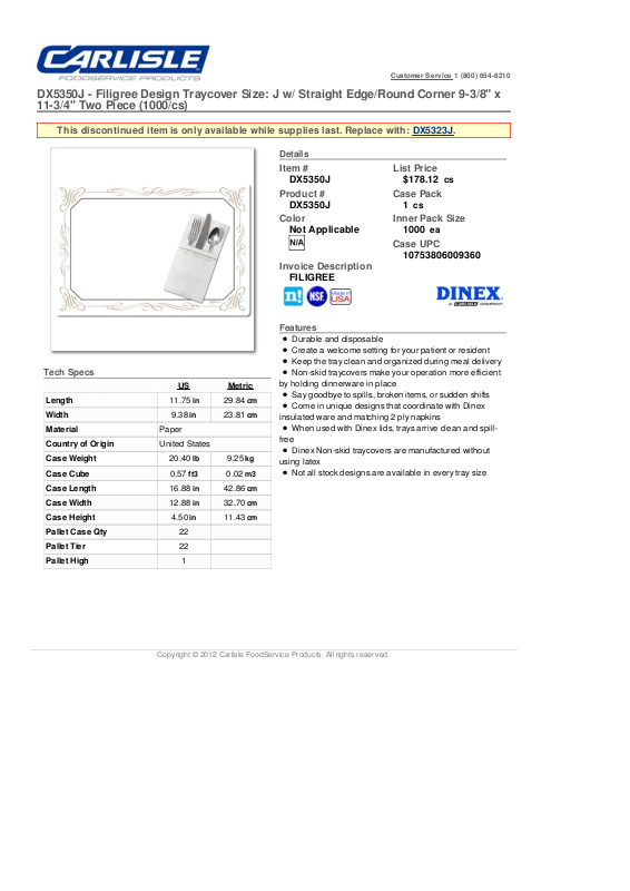 Copyright © 2012 Carlisle FoodService Products. All rights reserved.
