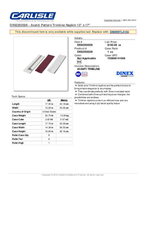 This discontinued item is only available while supplies last. Replace with: DX6999TL0102.