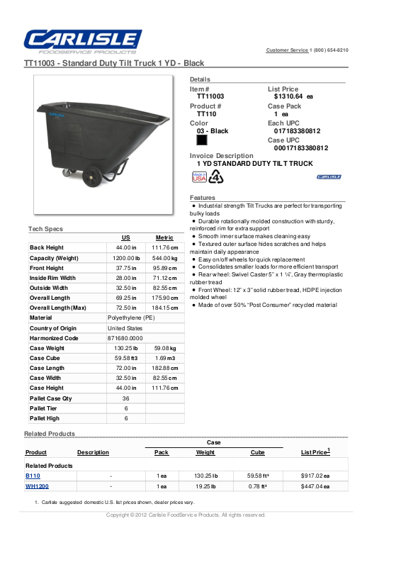 TT11003 - Standard Duty Tilt Truck 1 YD - Black