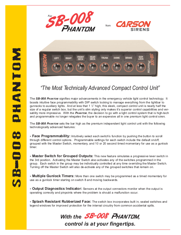 The SB-008 PHANTOM signifies major advancements in the emergency vehicle light control technology. It