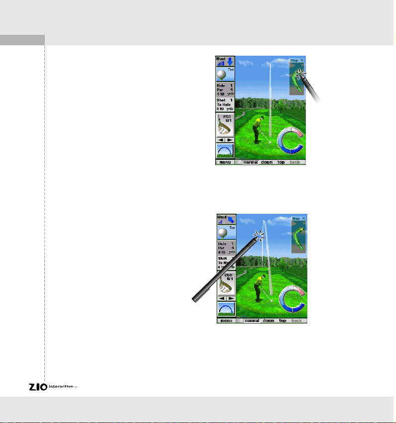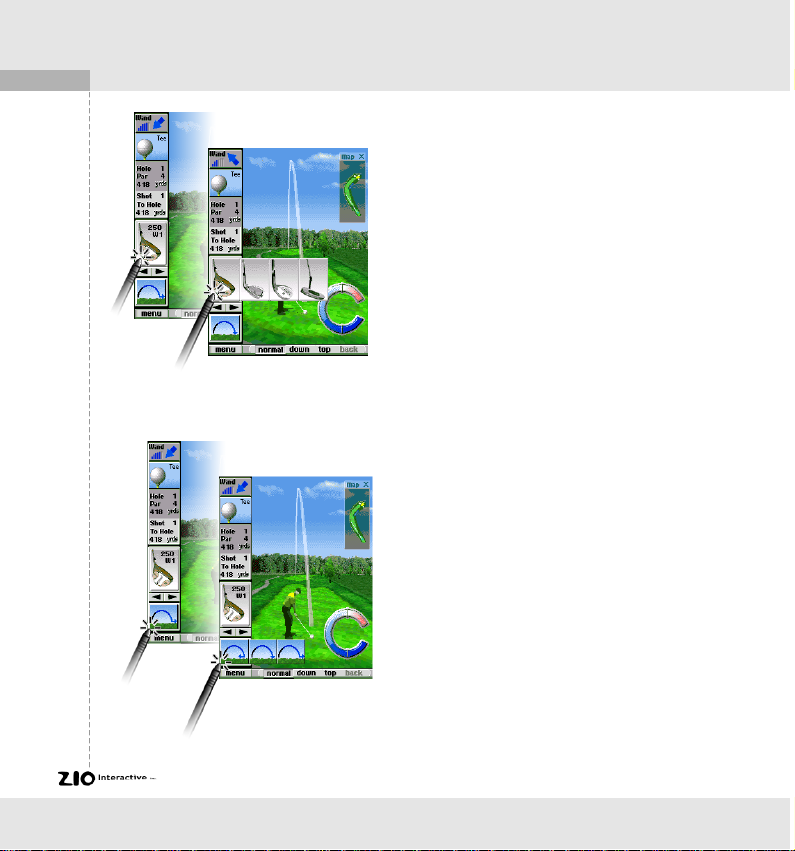 you can choose to hit the ball with topspin as shown on the left. With topspin, the ball will continue to roll after