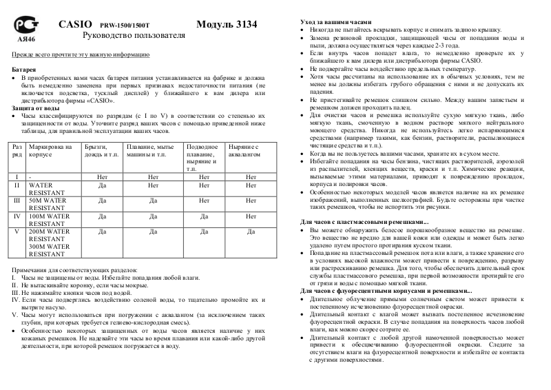таблицы, для правильной эксплуатации ваших часов.