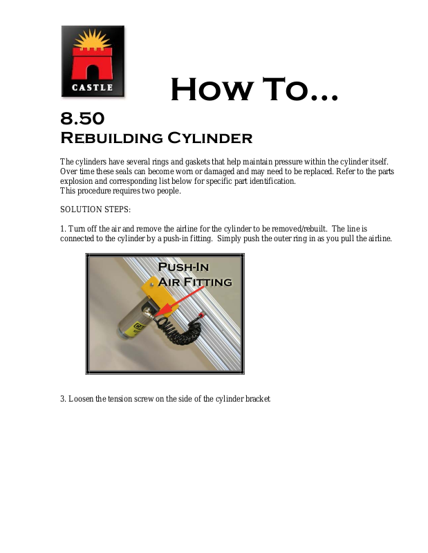 1. Turn off the air and remove the airline for the cylinder to be removed/rebuilt. The line is