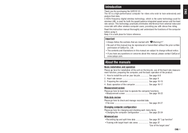 Thank you for purchasing the CATEYE V3.