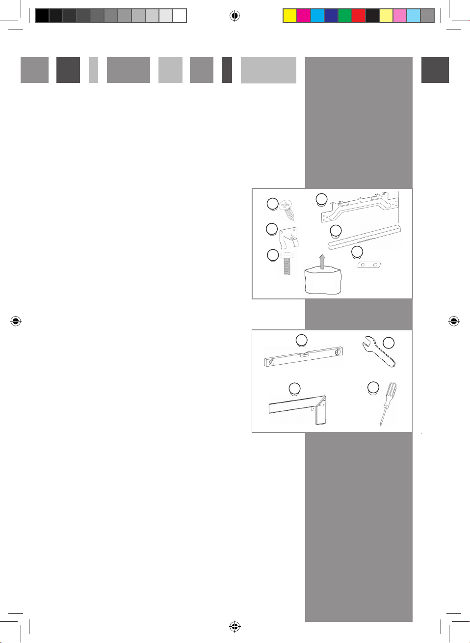 horizontal position. Secure the fixing bracket (2) using screws(1).