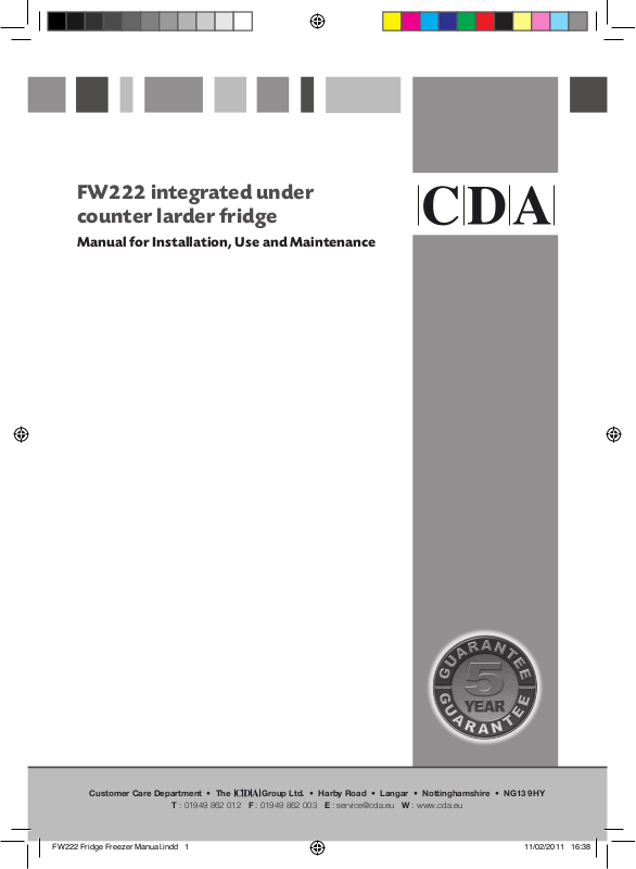 FW222 Fridge Freezer Manual.indd 1 11/02/2011 16:38