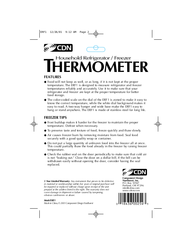 temperature. The ERF1 is designed to measure refrigerator and freezer