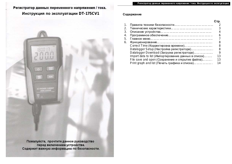 Регистратор данных переменного напряжения / тока. . Инструкция по эксплуатации