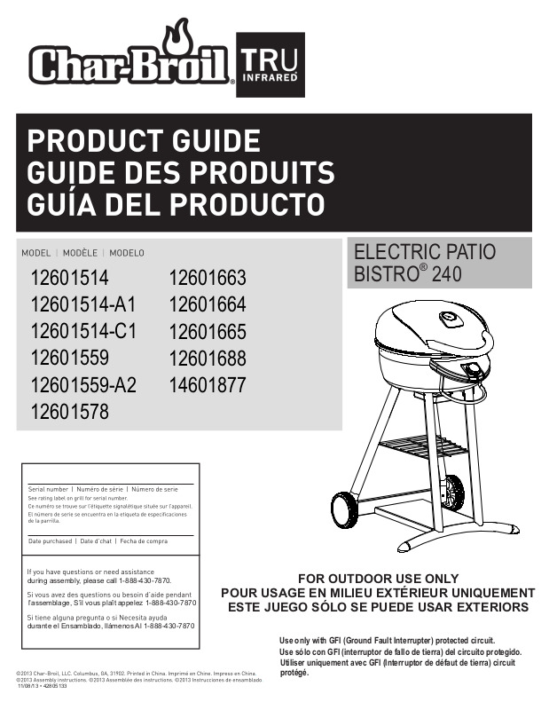 Use only with GFI (Ground Fault Interrupter) protected circuit.