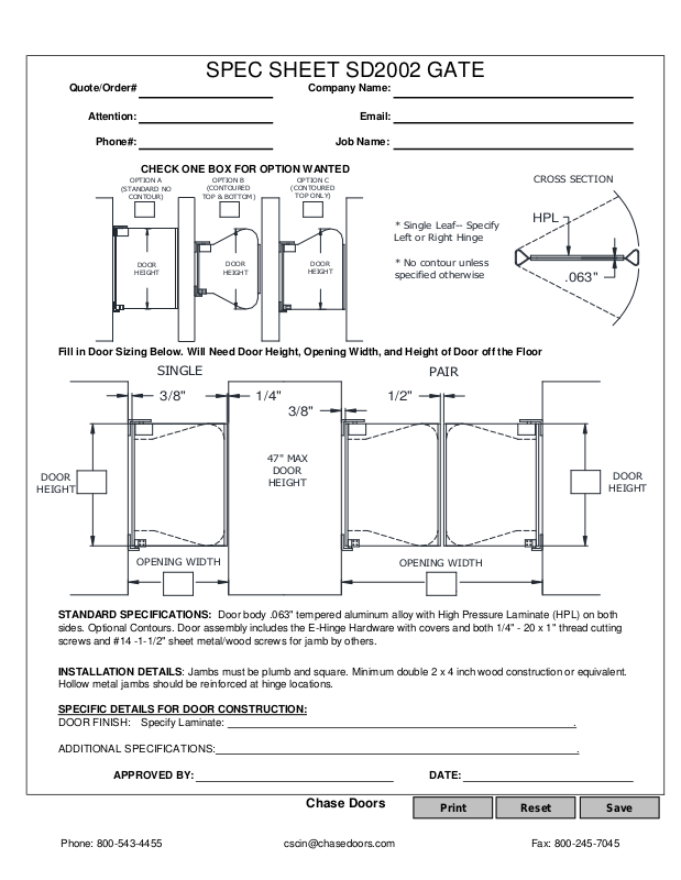 SPEC SHEET SD2002 GATE