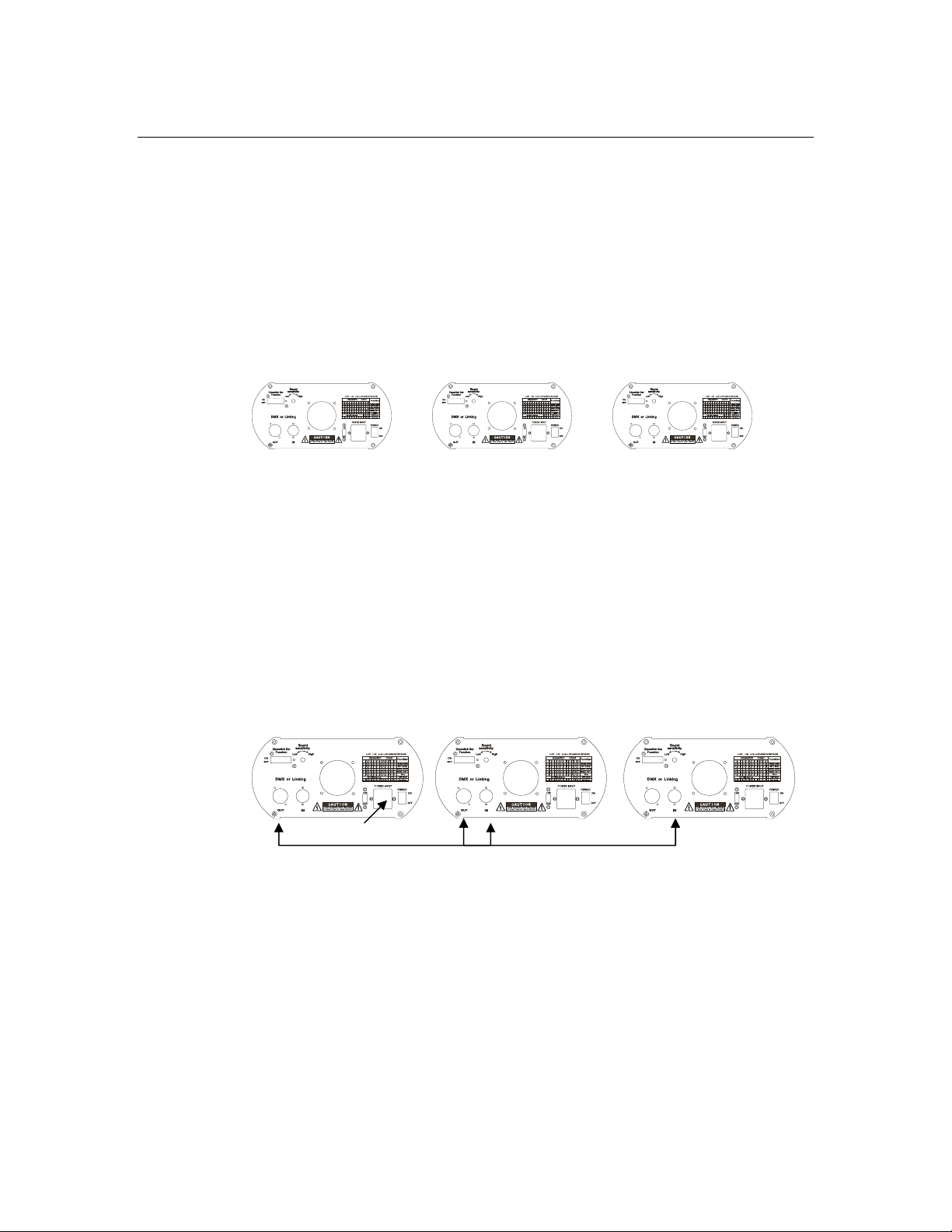 never overlap. If they do, this will result in erratic operation of the fixtures whose starting address is