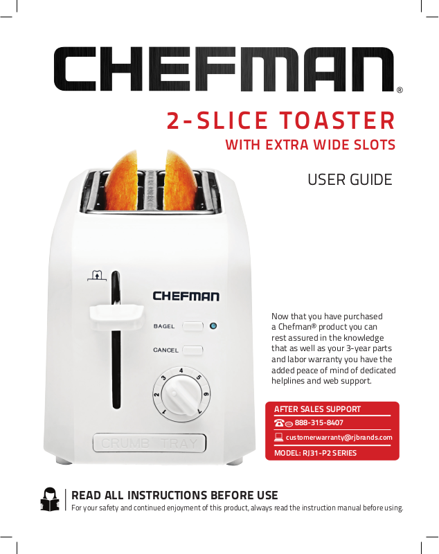 HOW TO OBTAIN WARRANTY SERVICE: If your CHEFMAN® 2-SLICE TOASTER WITH EXTRA WIDE SLOTS should prove