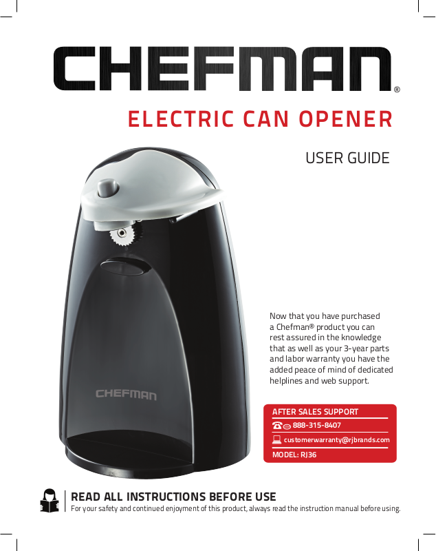 HOW TO OBTAIN WARRANTY SERVICE: If your CHEFMAN® ELECTRIC CAN OPENER should prove to be defective