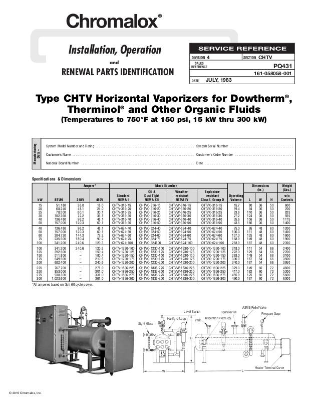 The Chromalox Horizontal Electric Vaporizer is a thoroughly