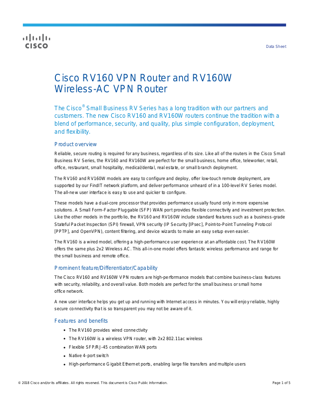 customers. The new Cisco RV160 and RV160W routers continue the tradition with a