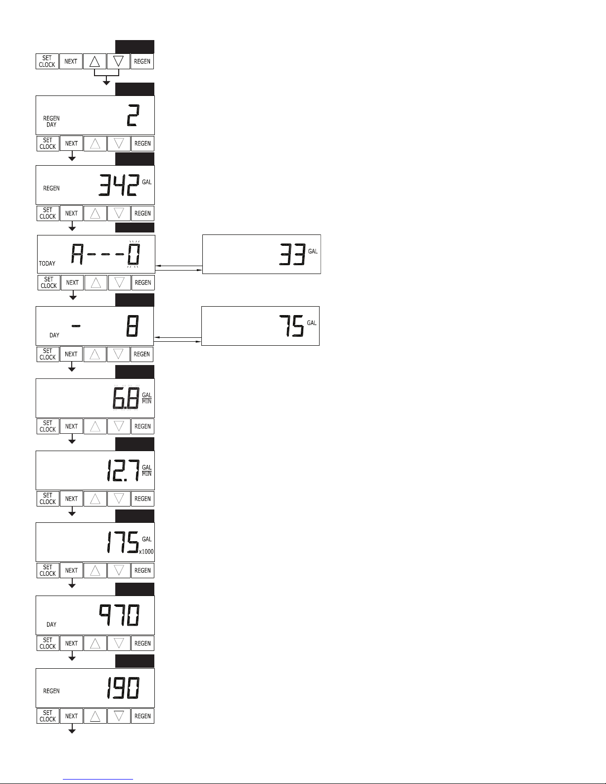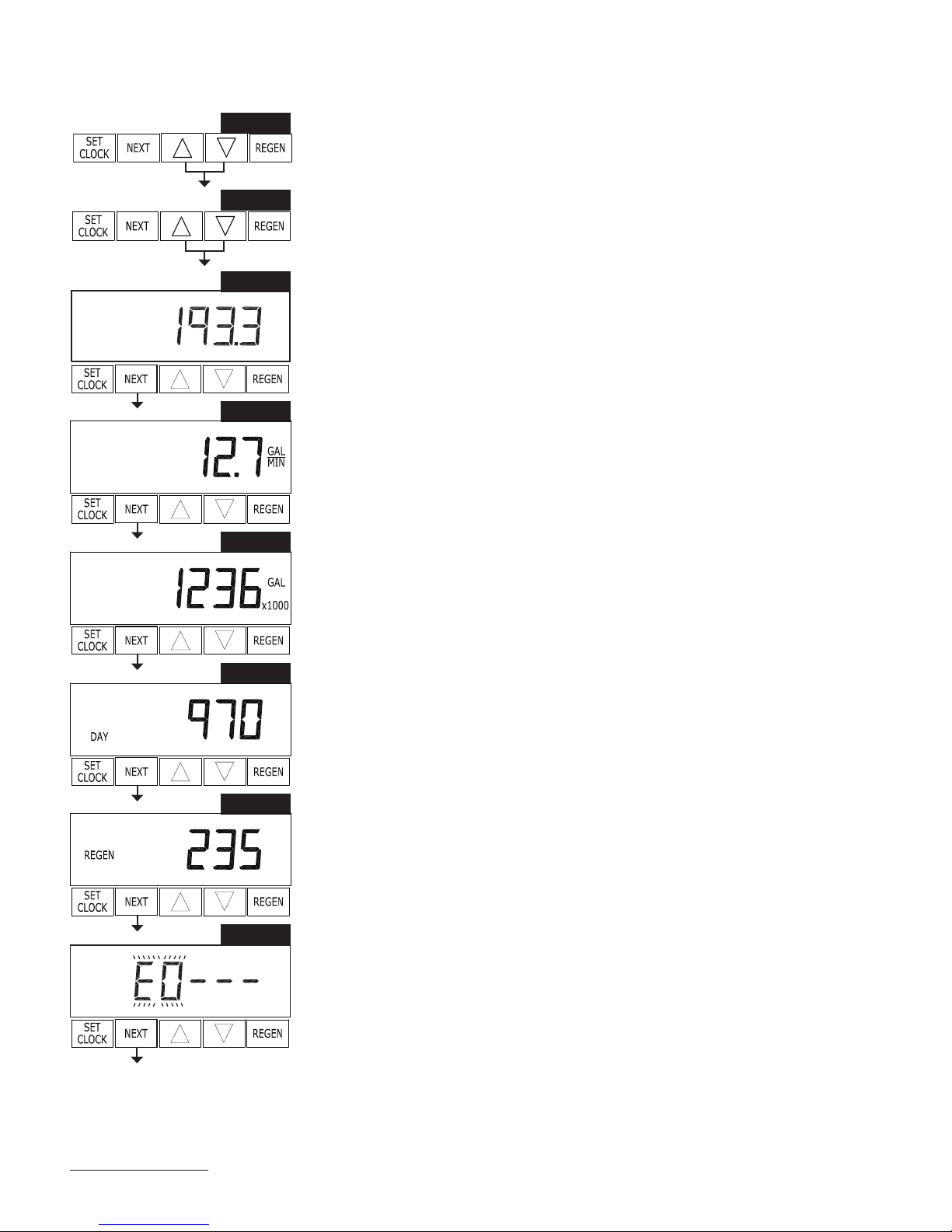 treated since startup. This display will equal zero if a water meter is not in stalled. Press