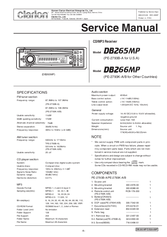 * We cannot supply PWB with component parts in prin-
