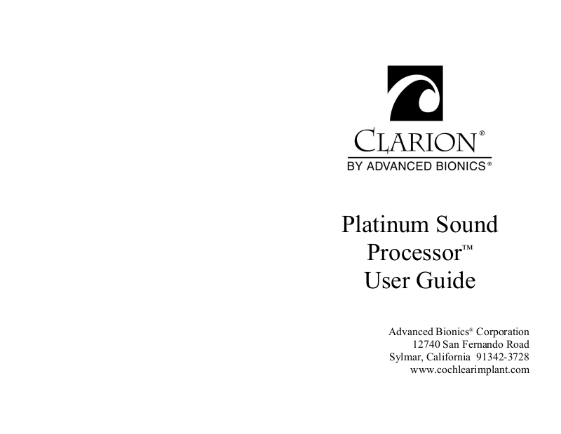 Advanced Bionics$ and CLARION$ are registered trademarks of Advanced Bionics