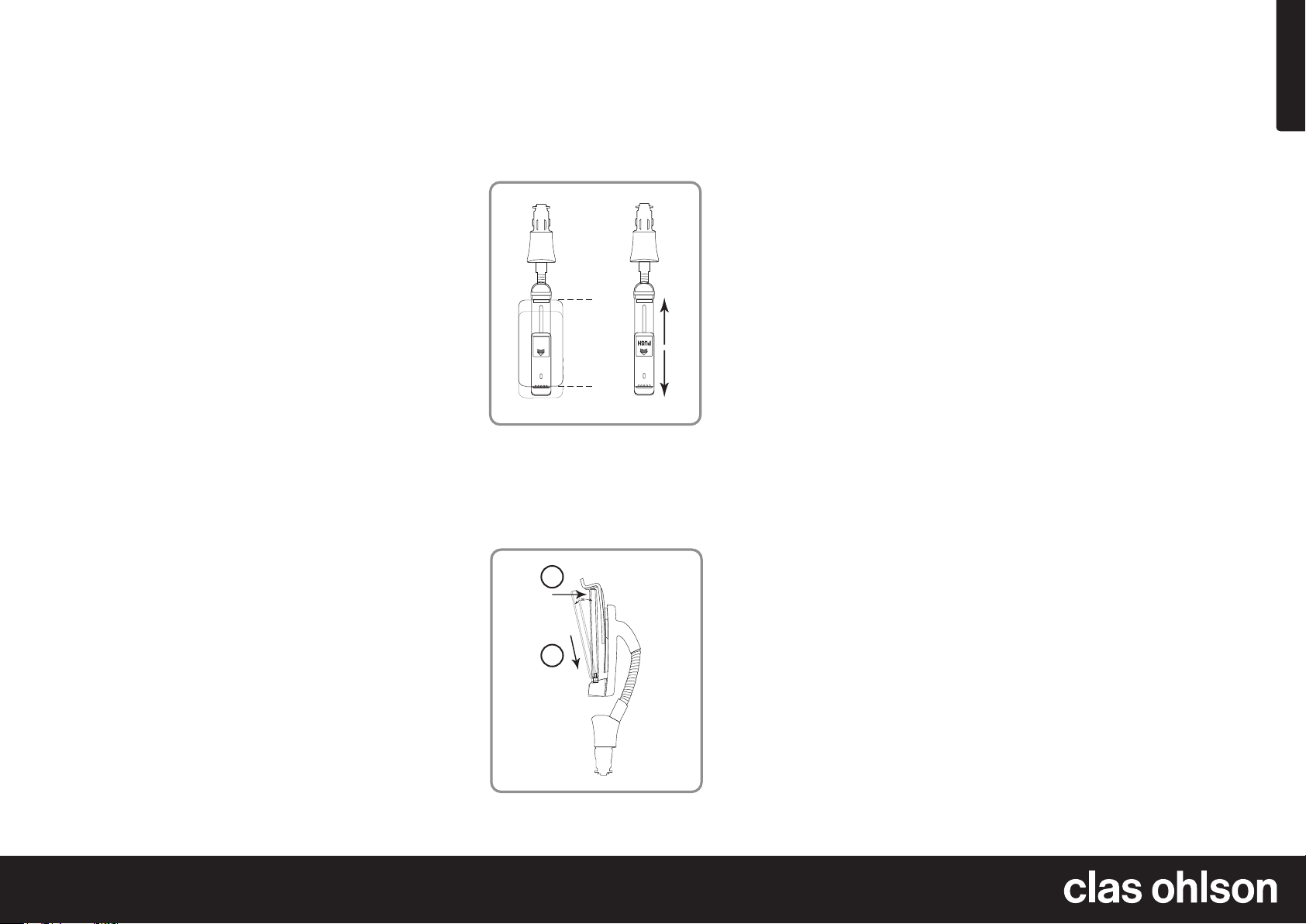 1. Tryck in låsknappen och skjut isär, eller ihop hållaren