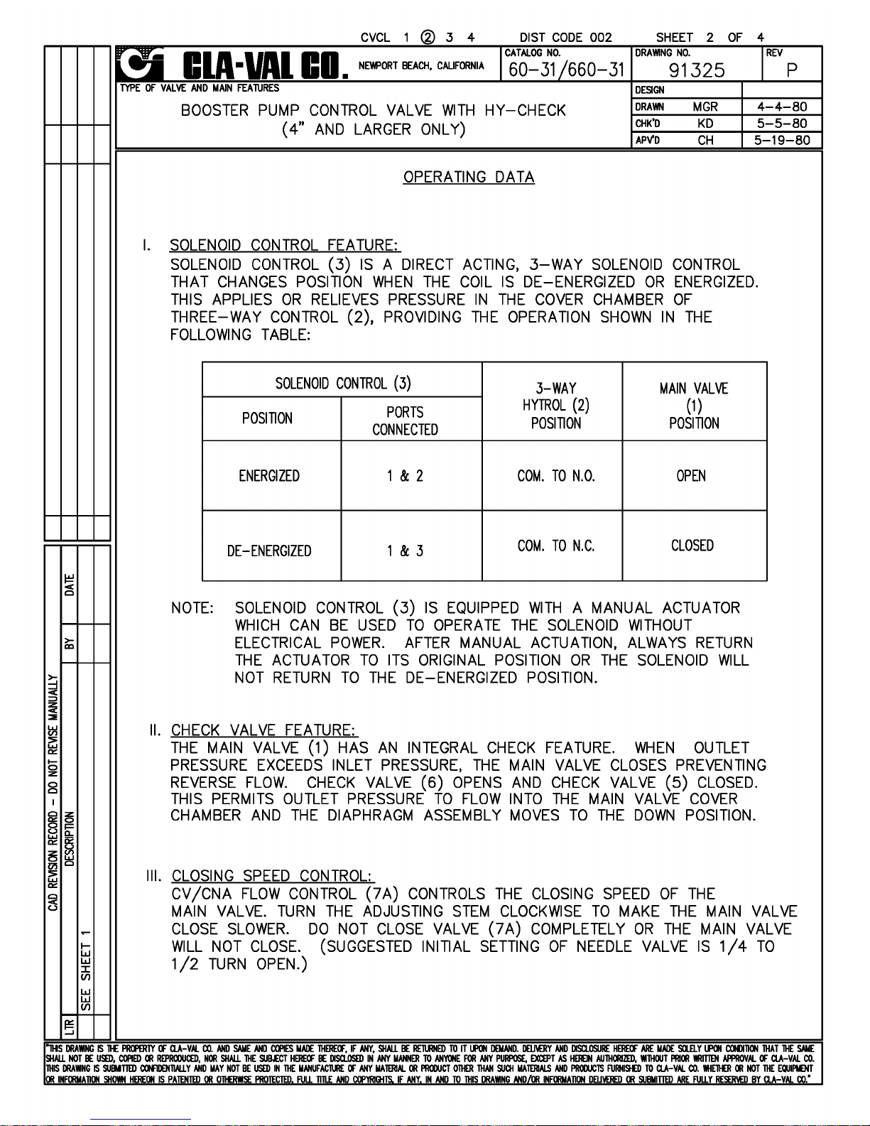 CLA-VAL 60-31, 660-31 Installation, Operation And Maintanance Manual