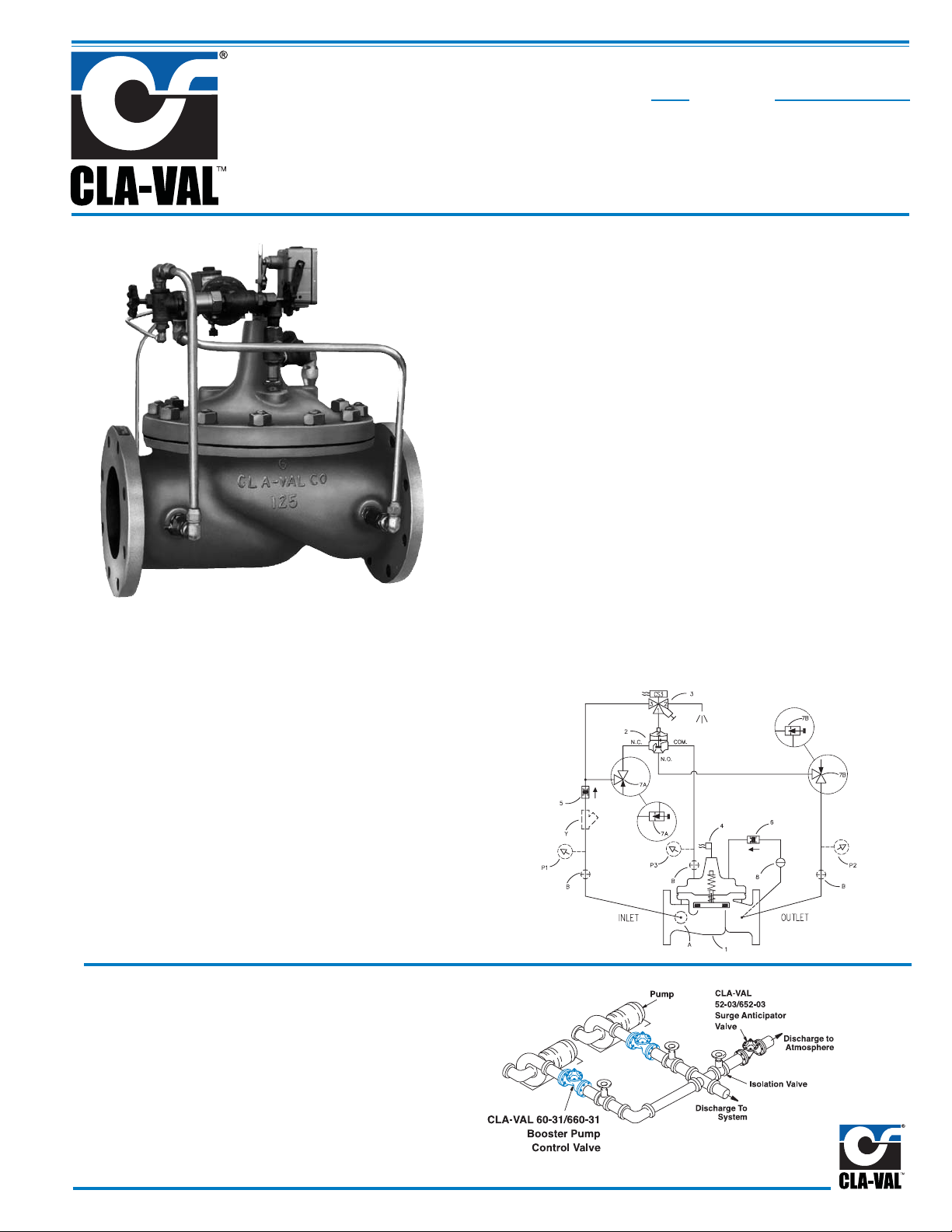 The Model 60-31/660-31 is an automatic valve of a modified globetype design with a built-in, lift type, check feature. It is hydraulically