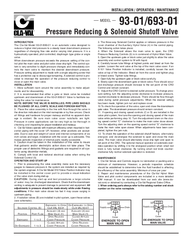 For a more detailed IOM Manual go to www.cla-val.com or contact a Cla-Val Regional Sales Office.