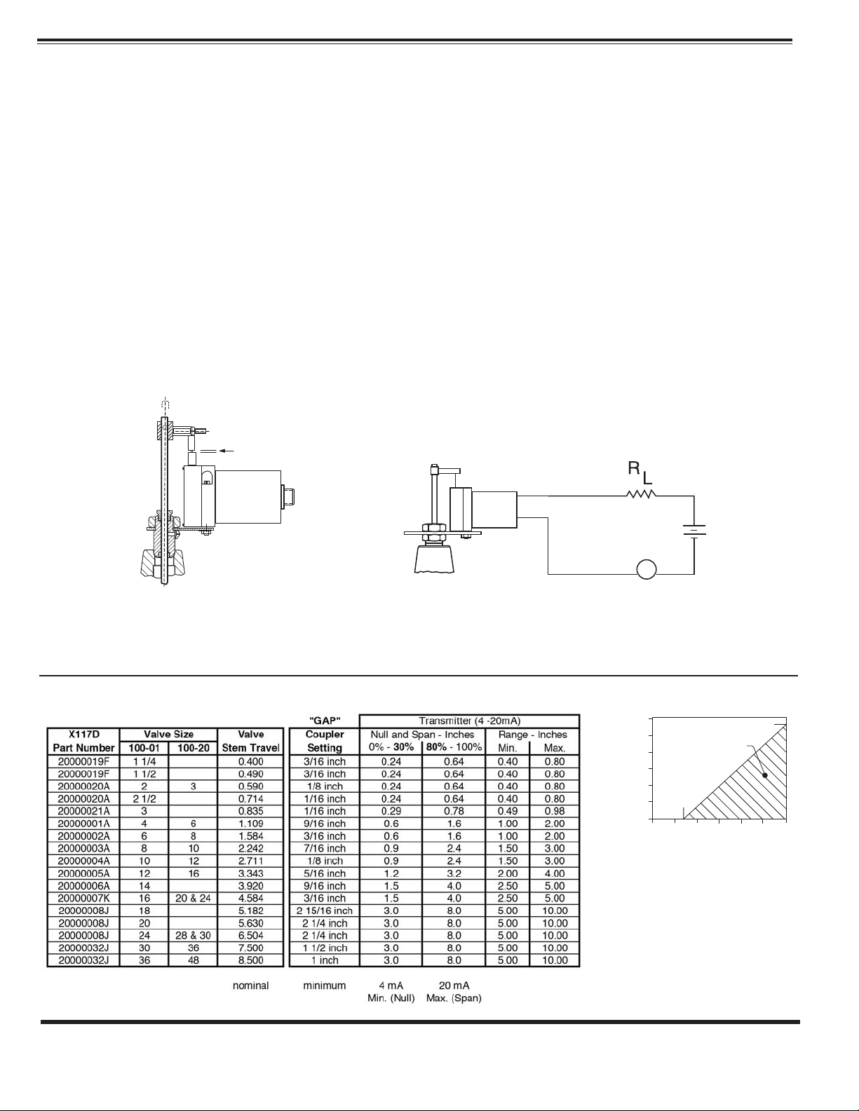 and setting the 20 mA position (valve fully open) within 80% to 100% of total transmitter range.