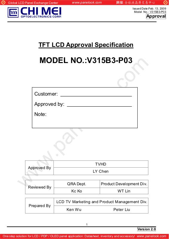 Model No.: V315B3-P03